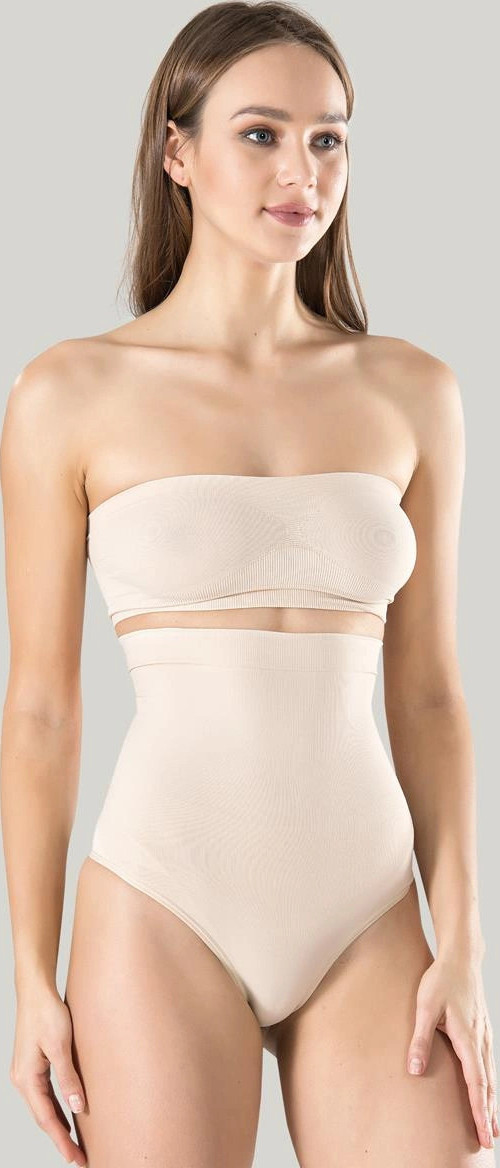 Kadın Ten Dikişsiz Eksta Yüksek Bel Silikon Mideli String 1 Beden Inceltici Külot Korse