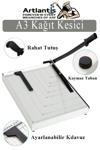 Artlantis Giyotin Kağıt Kesme Makinesi A3 Metal Kollu Tablalı A5-A4-A3 Ayarlanabilir Sürgülü Paslanmaz Kaliteli
