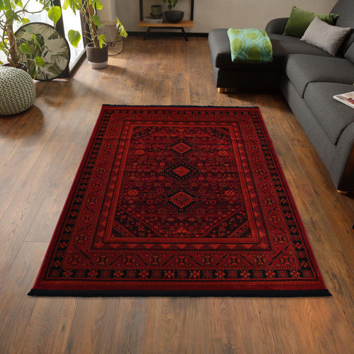 🟥 Giza Home Afgan Türkmen Otantik Desenli Dokuma Kırmızı Halı