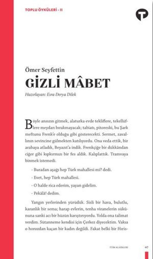 Yirminci yüzyılın toplumsal ve siyasal meselelerini ince bir dikkat ve mizahla metinlerine taşıyan Ömer Seyfettin’in yirmi kısa öyküsü Gizli Mâbet’te bir araya geliyor.