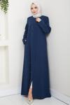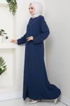 Büyük Beden Taş Detaylı Lacivert Ferace - Image 1