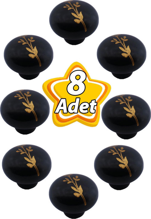 8 Adet Asya Kulp Siyah Polimer Düğme Kulp Mantar Mobilya Mutfak Dolabı Çekmece Kulbu Kulpları