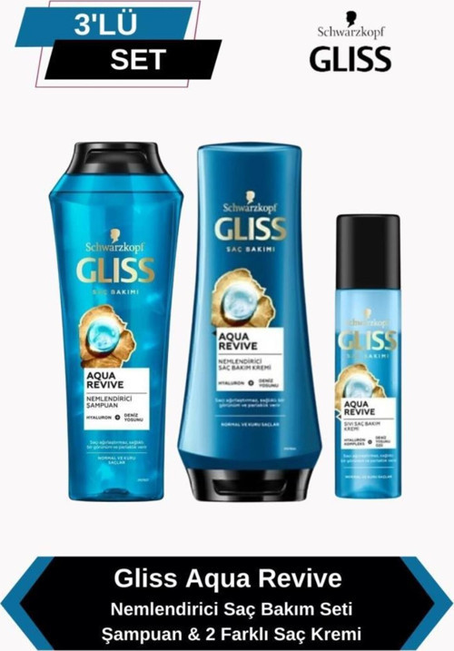 Gliss Aqua Revive Nemlendirici Saç Bakım Seti: Şampuan & 2 Farklı Saç Kremi
