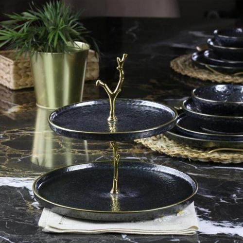 Glore'den yepyeni bir seri Black Pearl. Porselenden üretilmiş olan bu serinin 2 katlı kurabiyeliğin alt tabağı 26 cm üst tabağı 20 cm olup katlı mekanizmanın toplam yüksekliği 21.5 cm'dir.
