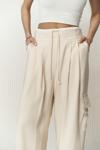 Ürün Açıklaması: Düğme ve Fermuar kapamalı Arkası fermuarlı ve düğmeli, beli boxer detaylı kargo pantolon. Ürün İçeriği: %60 Viskon %40 Tencel İç Boxer Kumaş; %50 Pamuk %45 Polyester %5 Likra Ürün Beden Tablosu: Beden Boy Bel Ç. Kalça Ç. İç Bacak XS 110 cm 70 cm 110 cm 75 cm S 110 cm 74 cm 114 cm 75 cm M 100 cm 68 cm 116 cm 75 cm L 100 cm 72 cm 120 cm 75 cm Model Ölçüsü :Boy:1.74 cm Kilo: 52 kg ( Model XS Beden ) Yıkama Talimatı: Kullanılan Suyun Isısı 30 Dereceyi Geçmemelidir. Aynı Renklerle Yıkayınız. Tersinden Yıkayınız. Çamaşır Suyu Kullanılmaz. Orta Isıda Ütü Kullanılabilir. Kuru Temizleme Yapılmaz. Kurutma Makinesine Atmayınız.