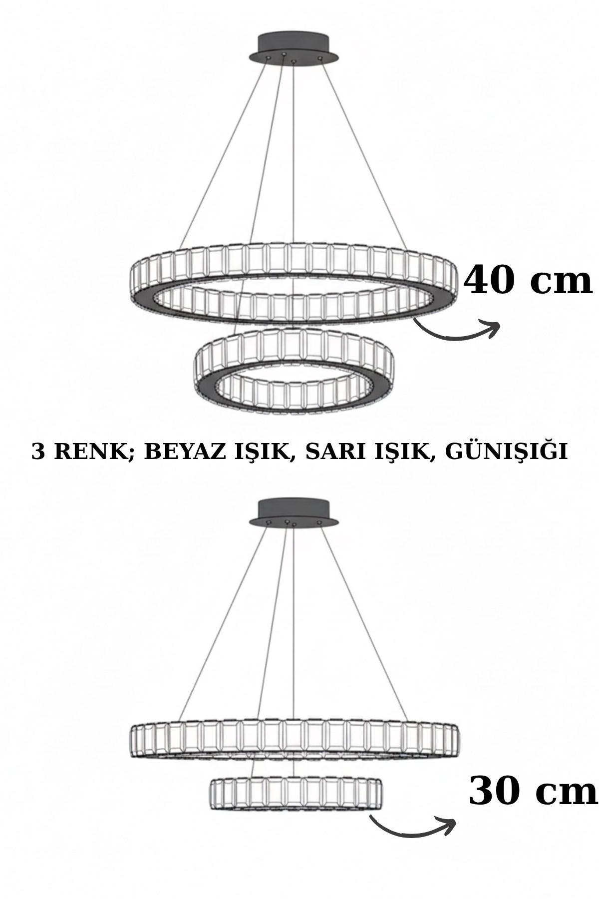 Ürün Adı: İki Halkalı Kristal LED Avize (30-40 cm)