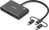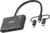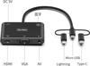 Bu ürün lightning micro usb ve type-c tipi arabirim ile donatılmış cep telefonu veya tablet gibi cihazlarla birlikte kullanılabilecek 5'i 1 arada dijital ses-video aktarım kablosudur.