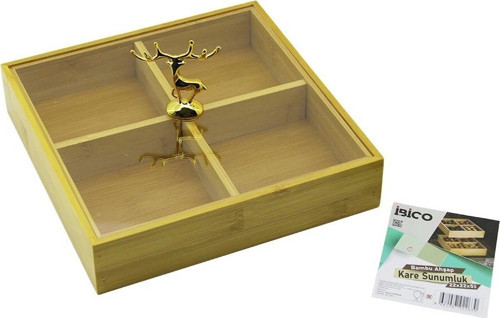 Go İthalat KARE 4 BÖLMELİ=2IN1=BÖLMESİZ ÇOK AMAÇLI KUTU AHŞAP BAMBU SERVİS SUNUM TEPSİ - TAHTASI 22X22X5CM (536