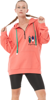 - 1 adet fermuar detay baskılı oversize kadın sweatshirt