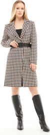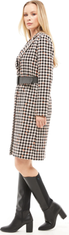 Kemer Detaylı Desenli İçi Astarlı Kadın Kaşe Kaban