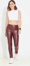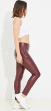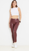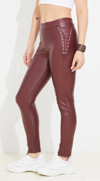 Yanları İp Büzgü Detaylı, İçi Şardonlu Kadın Deri Tayt