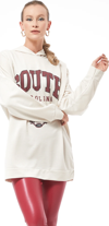 Kadın Krem 3 İplik şardonlu Kapüşonlu Sweatshirt-W1108-K - Image 1