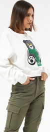 Bu sıfır yaka ayıcık işlemeli kadın crop sweatshirt, sevimli ayıcık işlemesi ve crop kesimiyle gardırobunuzun dikkat çekici bir parçası olacak. Hem şıklığı hem de konforu bir arada sunarak, günlük kombinlerinize modern bir dokunuş katmanıza yardımcı olur.