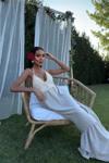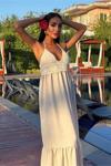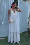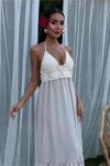 Göğsü Trikolu Keten Uzun Elbise 2904-08