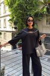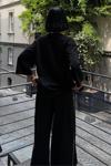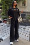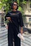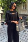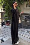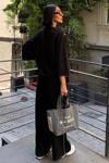 - Rahat kesimi ile günlük kullanım için ideal, göğüs pencereli ve aksesuar detaylı modal takım.; - Düz deseniyle zamansız bir şıklık sunan bu takım, her ortamda rahatlıkla tercih edilebilir.; - Regular kalıp sayesinde vücut hatlarınıza uyum sağlayarak konforlu bir deneyim yaşatır.; - Uzun boy tasarımı ile bacaklarınızı olduğundan daha uzun gösterirken, siyah rengi kolay kombin yapma imkanı tanır.; - Dokuma kumaşı dayanıklılığı artırırken, modal materyali cildinizle dost dokusuyla öne çıkar.; - Bisiklet yakası sayesinde modern ve minimalist bir görünüm kazandırırken, standart kol tipi hareket özgürlüğünüzü kısıtlamaz.; - Uzun kol boyu mevsim geçişlerinde ideal koruma sağlarken, siyah renk her zaman moda olan bir seçenektir.; - Astarsız yapısıyla hafif ve nefes alabilen bir yapıya sahip olup, gün boyu rahat etmenizi sağlar.; - Cepsiz tasarım pratikliği ön planda tutarken, geniş paça siluetiyle trendleri takip eder.; - L bedeniyle farklı vücut tiplerine uygunluk göstererek geniş kullanıcı kitlesine hitap eder.; - Astarsız oluşu ekstra konfor sunarken, yıkama talimatlarına uygun bakım ile uzun süreli kullanım vaad eder.; - Kemersiz yapısıyla basit ama şık bir görünüm sergileyerek gardrobunuzdaki temel parçalardan biri haline gelir.