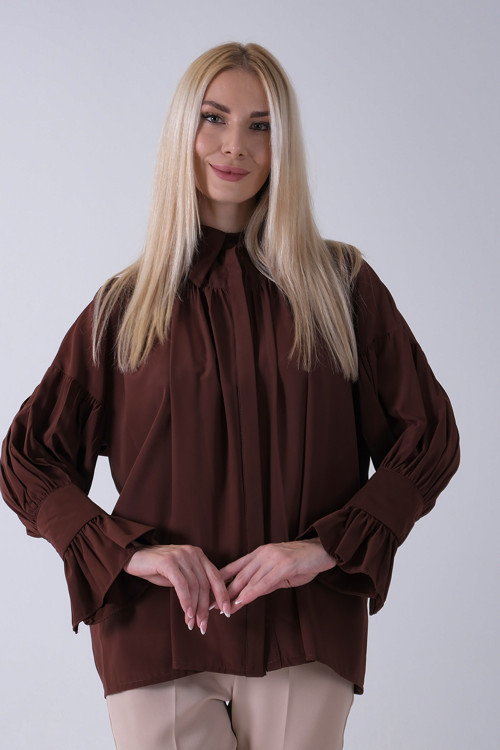 Göğüs ve Manşeti Büzgü Detaylı Bluz