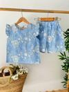 Yazın ferah havasını taşıyan bu şık takım, kız çocuklarının hem rahat hem de sevimli görünmesi için özenle tasarlandı. Çiçek işlemeli detayı ve hafif yapısıyla günlük kullanımda konfor sunar.