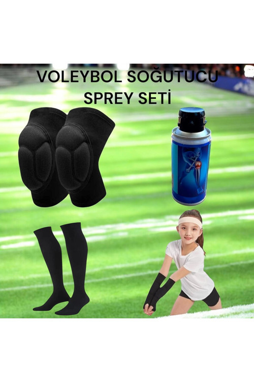 Gök Sports Çocuk Voleybol Dizliği Voleybol Elliği Voleybol Çorabı Kapartma Sünger Destekli Soğutucu Sprey Set