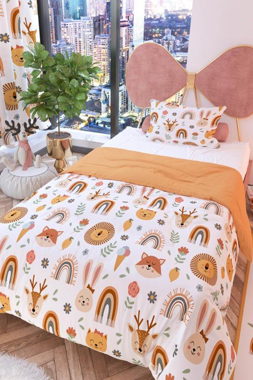 Gökkuşağı ve Hayvanlar Çift Taraflı Çocuk Nevresim Takımı Polycotton