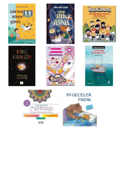 Gökten Düşen Köpek - GİZEMLİ SİSİN PEŞİNDE - Kafacanlar - Bu Mahallede Macera Hiç Bitmiyor - Renkli Karanlığım - Unicorn - Hazine Sandığı - Taç Hediyeli Boyama Kitabı - Mücevher Çıkartma Koleksiyonu - Çekirdek Aile Geziyor - Atatürk İstanbul’da - Çizgilerin Gizemi - Mandala Çocuklar İçin Boyama Kitabı - İyi Geceler Fındık : İlk Okuma Kitaplarım