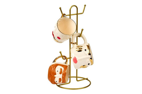 Edorahome Gold 6 Bölmeli Bardak Askılık,Kupa,Fincan Kancalı Mutfak Tezgah Üstü Düzenleyici-Metal Paslanmaz