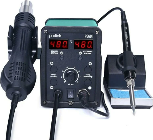 Prolink, kaynaklanmış 2-fonksiyonlu (sıcak hava + lehimleme) rework istasyonu olarak, hem başlangıç seviyesi hem de orta seviyede elektronik tamirciler için güçlü bir araçtır. SMD devre kartlarında hassas sökme ve yeniden lehimleme işlemleri, daralan kasa alanlarında sıcak hava ile kurutma, ısı büzme ve ön ısıtma gibi görevler için idealdir.