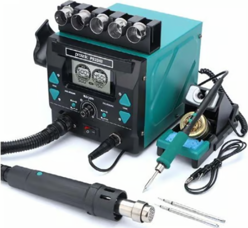 Prolink P-92 DIII, elektronik kart tamiri, SMD/BGA sökme-takma ve hassas lehimleme işlemleri için geliştirilmiş yüksek performanslı 2’si 1 arada dijital lehimleme istasyonudur. Aynı gövde üzerinde hem dijital sıcak hava tabancası hem de dijital lehimleme ünitesi sunarak atölye çalışmalarında maksimum verim sağlar.