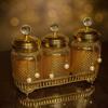 Şıklığın cam hali: Altın kapaklı incili kavanoz seti