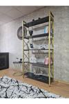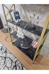 Gold Boyalı Kitaplık - 5 Raflı Suntalem Lüks Kitaplık Siyah Mermer