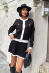 - Zarif tasarımıyla dikkat çeken gold düğme detayları, şıklığınızı tamamlar.; - Siyah rengin asaletini yansıtan bu takım, her ortamda stil sahibi görünmenizi sağlar.; - Düz deseniyle kolayca kombinlenebilir; farklı aksesuarlarla zenginleştirilebilir.; - Regular kalıbı sayesinde rahat bir kullanım sunarken, vücut hatlarınıza uyum sağlar.; - Dokuma kumaşı ile dayanıklılığı artırırken konforlu bir deneyim yaşatır.; - Normal boy kesimiyle hem günlük hem de özel günlerde idealdir.; - Standart bedeniyle geniş bir kullanıcı kitlesine hitap ederken, her vücut tipine uyum sağlar.; - Cool & comfort persona'sına uygun olarak tasarlanmıştır; rahatlık ve şıklığı bir arada sunar.; - Casual/günlük ortamlarda rahatlıkla tercih edebileceğiniz bu takım, tüm sezonlarda gardrobunuzun vazgeçilmez parçası olacak.; - İki parça halinde gelen hırka-etek seti, pratiklik ve şıklığı bir arada sunarak zamandan tasarruf etmenize yardımcı olur.