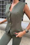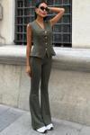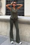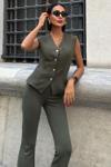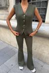 - Kadın ve kızlar için tasarlanmış, düz desenli hakiki modal kumaştan üretilmiş yelek-pantolon takımı.; - Dokuma kumaş tipi ile dayanıklılığı ve konforu bir arada sunar.; - Yetişkinler için uygun uzun boy ve regular kalıp, rahat bir kullanım sağlar.; - V yaka tasarımı ile şık ve modern bir görünüm kazandırır.; - Type 1 yıkama talimatına uygun şekilde kolayca temizlenebilir; astarsız yapısıyla hafiflik ve rahatlık sunar.; - L beden seçeneğiyle geniş beden skalasına hitap eder.; - 2'li paket içeriği ile hem yelek hem de pantolon set halinde gelir; kolsuz tasarımı yaz aylarında serinlik sağlar.; - Sürdürülebilirlik detayı bulunmazken, dokulu dokuma tipiyle estetik bir dokunuş ekler.; - Kemersiz yapısıyla sade ve zarif bir siluet oluştururken, ispanyol paça detaylarıyla modern bir stil sunar.; - Kruvaze siluet sayesinde feminen hatları ön plana çıkartır; ce
