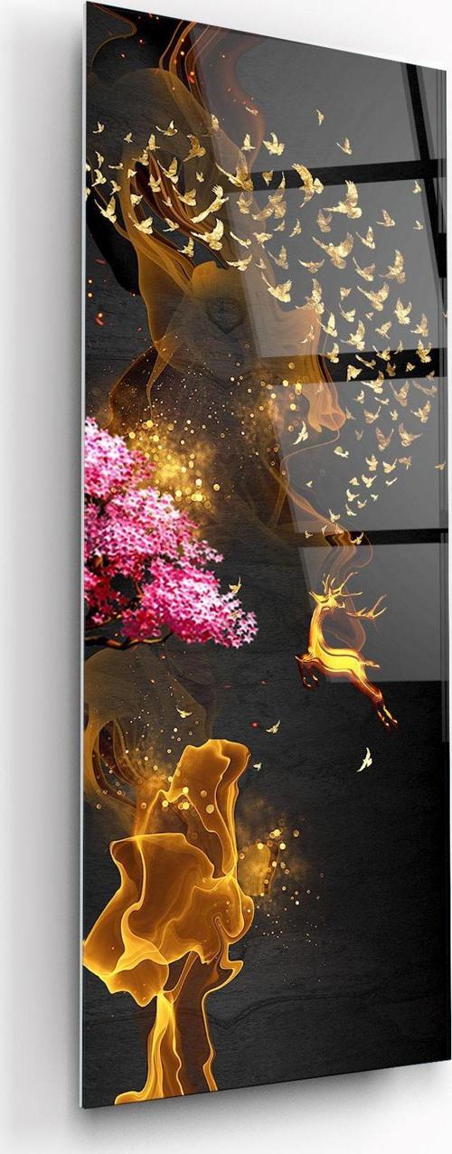 Gold Geyik Panoramik Cam Tablo | Hediyelik, Dekoratif, Ofis, Mutfak