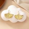 - Altın rengindeki ginkgo yaprağı motifleriyle süslenmiş, şıklığı ve zarafeti bir arada sunan kadın küpesi.; - Pirinç materyalden üretilmiş olup, dayanıklılığı ve parlak görünümü ile dikkat çeker.; - Hem günlük kullanım hem de özel günlerde tercih edebileceğiniz ideal aksesuar seçeneği olarak öne çıkar.; - Çivi model tasarımı sayesinde kulağa rahatça otururken, ginkgo yaprağı detaylarıyla estetik bir dokunuş katmaktadır.; - Taş içermeyen yapısıyla hafifliği ve kolay temizlenebilirliği ön plana çıkartır; böylece uzun süreli kullanım için uygundur.
