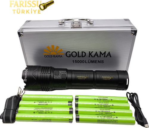 Karanlığı aydınlatmak için tasarlanmış en güçlü yardımcınızla tanışın! Gold Kama 15000 Lümen el feneri, sadece bir aydınlatma aracı değil; arama-kurtarma, kamp, avcılık ve güvenlik ihtiyaçlarınız için profesyonel bir settir.