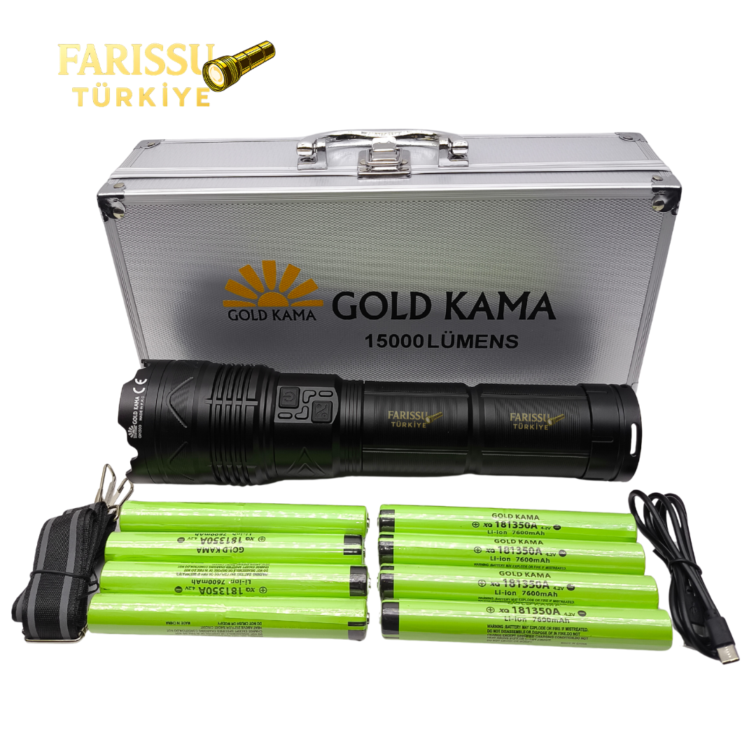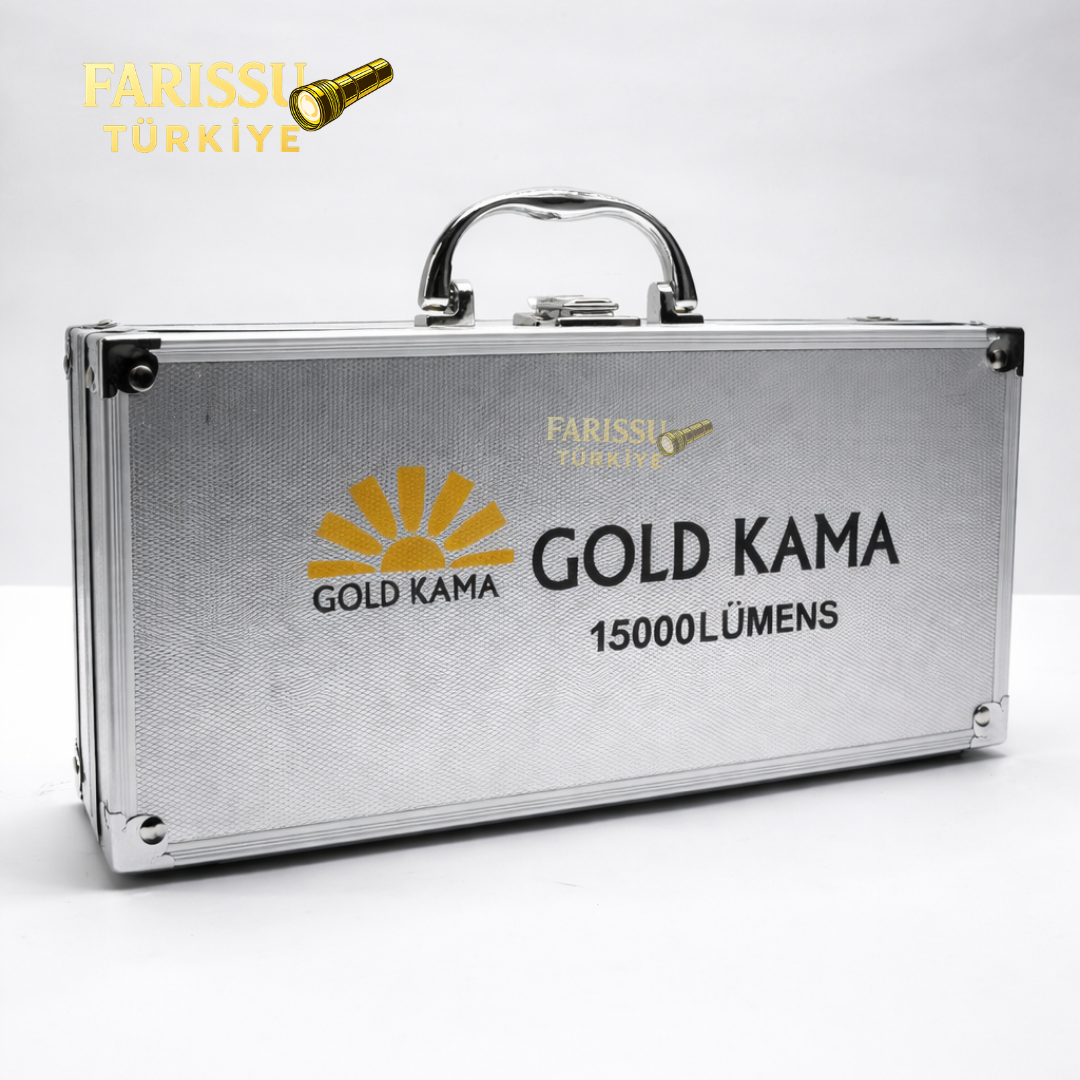 Gold Kama 15000 Lümen Profesyonel Uzun Menzilli El Feneri Seti - 30400 mAh Şarj Edilebilir - Full Aksesuarlı Metal Çantalı