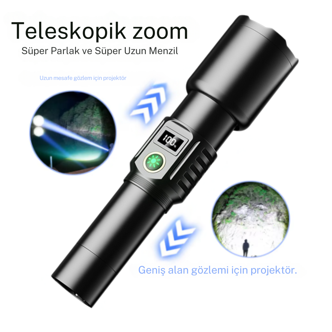 Güç & Işık: 100W LED teknolojisi ile 2500 metreye kadar etkili menzil.