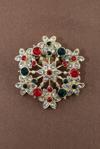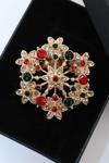 Keeba Gold renk pırlantalı çiçek broş. Taşlı tasarım çiçek broş. Yaka iğnesi çiçek broş. Çiçek broş.
