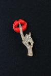 Keeba Gold zirkon sessiz ol broş. Yaka iğnesi sus broş. Taşlı tasarım dudak broş. Kadın broş. Dudak broş.