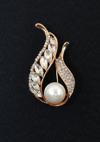 Keeba Gold zirkon taşlı incili lale broş. Yaka iğnesi lale broş, incili lale broş. Kadın broş. Lale broş.