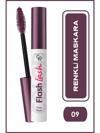 Golden Rose Flash Lash Colored Mascara - 09 Deep Plum - Renkli Maskara Flash Lash Renkli Maskara, yoğun pigment içeren renkleri ile kirpiklere çarpıcı ve göz alıcı bir görünüm kazandırır. Tek olarak uygulanabildiği gibi siyah maskaranın üzerine topcoat olarak uygulanıp kirpiklere renk dokunuşu yapılabilir. Suya dayanıklı formülü ve özel tasarım fiber fırçası ile kirpikleri renklendirirken daha uzun ve hacimli görünmesini sağlar, akma ve bulaşma yapmaz, gün boyu kalır. Renkli, çekici ve eğlenceli görünümler için 8 renk seçeneği mevcuttur. Daha çarpıcı ve renkli bir görünüm için göz makyajınızı GR Flash Liner Renkli Eyeliner ile tamamlayabilirsiniz.