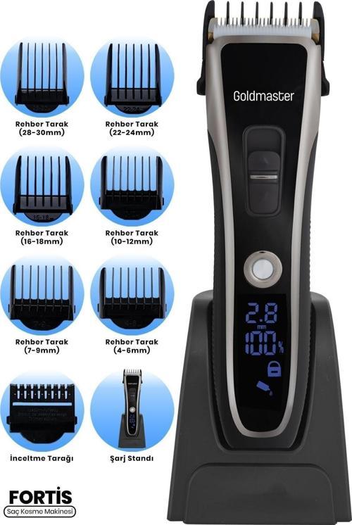 Goldmaster Fortis Şarj Standlı Dijital Ekranlı Hızlı Şarj Standlı Kablolu Kablosuz Saç Sakal Kesme M