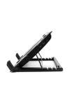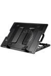 Fan Hızı : 700 ~ 1400 RPM; Fan Gürültü Seviyesi : 15 dBA (Min.); Uygunluk : 9" ~ 17" Notebook; Renk : Siyah; Boyutlar : 370x 58~160 x 265 mm; Yükseklik ayarı 5 kademe; 2 adet USB girişi;