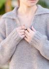 Desen Triko Kadın Yakası Nakış Detaylı Kazak 0249282 Füme - Image 1
