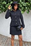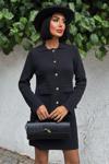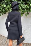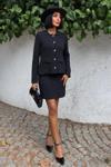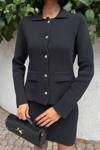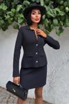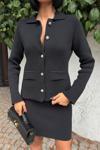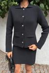 - Şık gömlek yaka tasarımı ile modern ve zarif bir görünüm sunar.; - Pratik cep detayları, günlük kullanım için ideal fonksiyonellik sağlar.; - Kaliteli çelik triko kumaşı sayesinde uzun süreli konfor ve dayanıklılık vaat eder.; - Siyah rengiyle kolayca kombinlenebilir ve her ortama uyum sağlar.; - Regular kalıp, rahat hareket etme özgürlüğü sunarken şık duruşunu korur.; - Dokuma kumaş tipi, ürünün formunu koruyarak estetik bir görünüm kazandırır.; - Normal boy kesimi ile vücut hatlarını nazikçe sararak dengeli bir siluet oluşturur.; - Standart bedeni sayesinde farklı vücut tiplerine uygunluk gösterir; herkes için idealdir.; - Cool & comfort persona'ya hitap ederek günlük kullanımda rahatlık ve stil sunar.; - Casual/günlük ortamlarda rahatlıkla tercih edilebilecek tarzda tasarlanmıştır.; - İki parçadan oluşan set halinde gelmesi pratiklik sağlar; hırka ve etek kombiniyle bütünlük içinde şıklığı yakalamanız mümkündür.; - Tüm sezonlarda giyilebilecek esneklikteki tasarım, mevsim geçişlerinde de vazgeçilmez olmanızı sağlar.