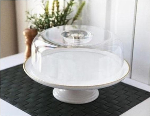 Gönül GNL 2804 Gold Kenarlı Beyaz Seramik Ayaklı Kek Fanusu 29,5 cm