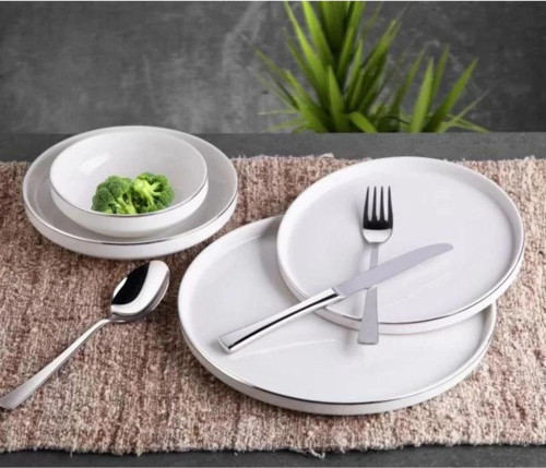 Gönül GNL 3252 Silver Kenarlı Beyaz Porselen Yemek Takımı 24 Parça
