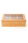 Bu bambu çay kutusu, mutfakta hem fonksiyonel hem de dekoratif bir seçenek olarak şıklık ve düzen sağlar.
