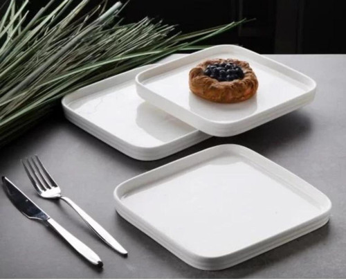Bu beyaz porselen kare tabak seti, hem işlevsel hem de dekoratif bir seçenek olarak sofralarınıza zarif bir dokunuş ekler.