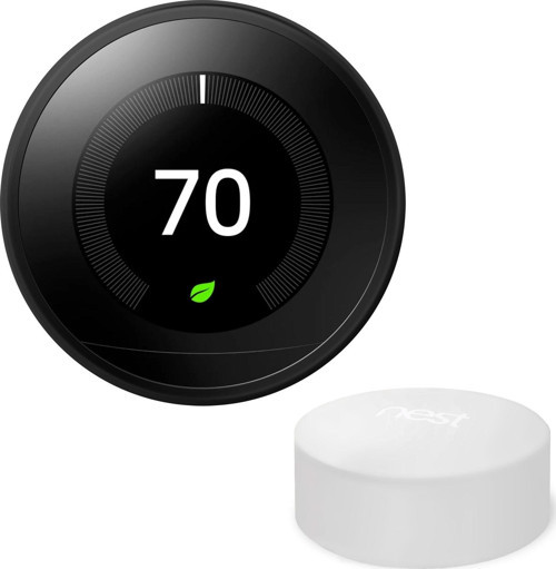 Google Nest Öğrenme Termostatı (3. Nesil) (T3016-ABD), Yuva Sıcaklık Sensörüyle (T5000SF) (Siyah)