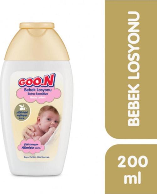 Goon Bebe Losyonu, % 100 doğal zeytinyağı içeriği ile bebeğinizin hassas cildini nemlendirir; kurumayı önlemeye yardımcı olur. İlk günden itibaren kullanabilirsiniz. Kızarıklık ve tahrişi önlemeye yardımcı olan Allantoin içerir. Allantoin, cildin su içeriğini artırarak nemlenmesine yardımcı olur. Paraben, boya, alkol ve parfüm içermez. Dermatolojik olarak test edilerek hassas ciltlerde kullanıma uygun bulunmuştur. Bebek cildinin PH dengesi ile uyumludur. Koruyucu içermez. Hipoalerjeniktir. Çocukların ve yetişkinlerin kullanımı için uygundur.